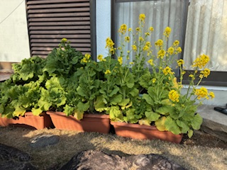 総合的に見ると、現在の菜の花は「一部はすでに開花、他はこれから」という、非常に自然で健全な生育段階にあります。播種時期、冬越し、日当たり、水管理がうまくいった結果であり、家庭菜園としては成功度の高い状態と言えます。