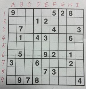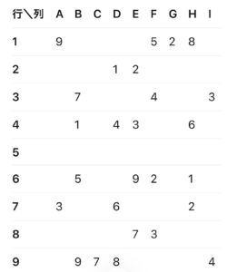列を A〜I、行を 1〜9 として読み取りました。